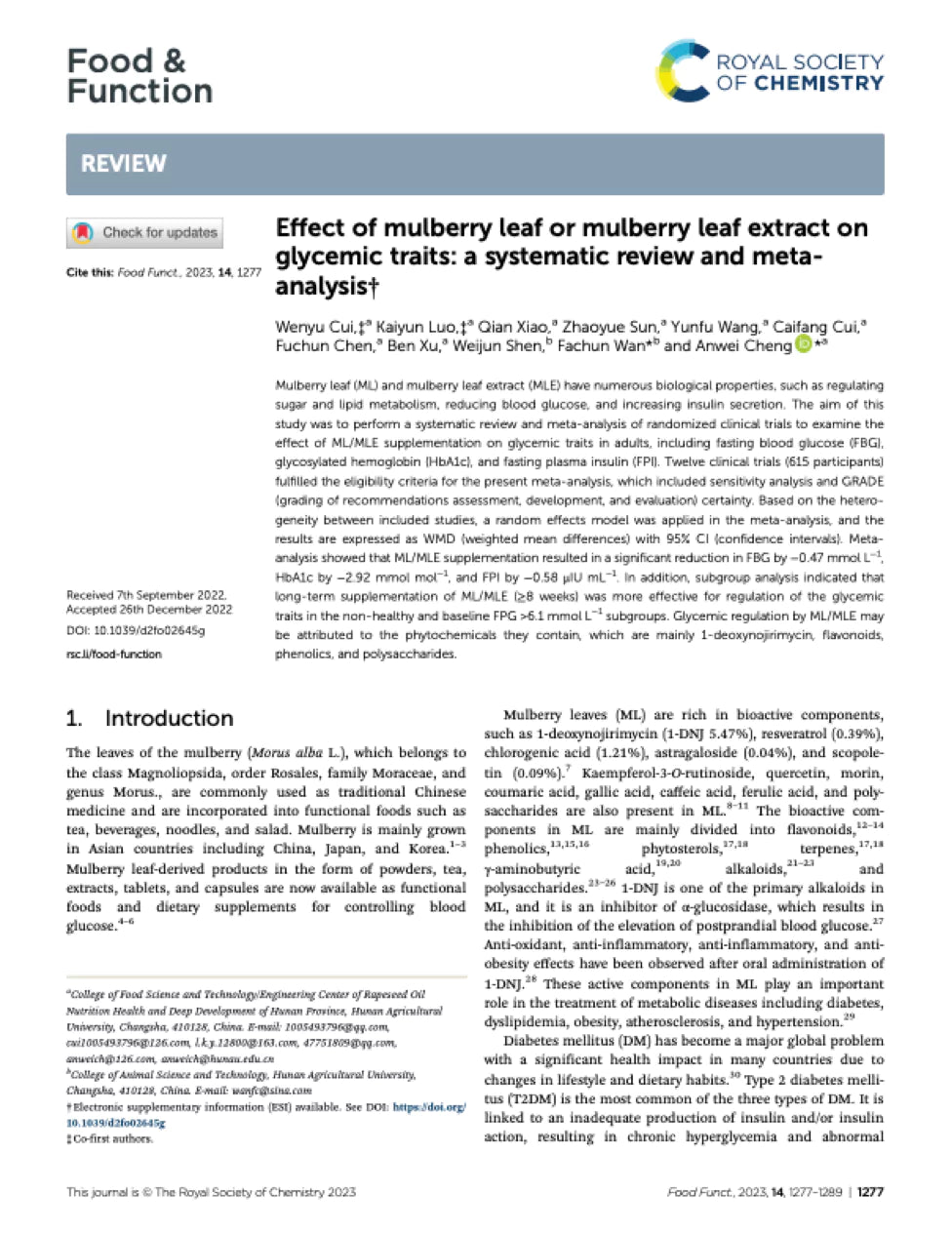 , on the effect of Mulberry leaf or Mulberry leaf extract on glycemic traits in adults, 615 participants.