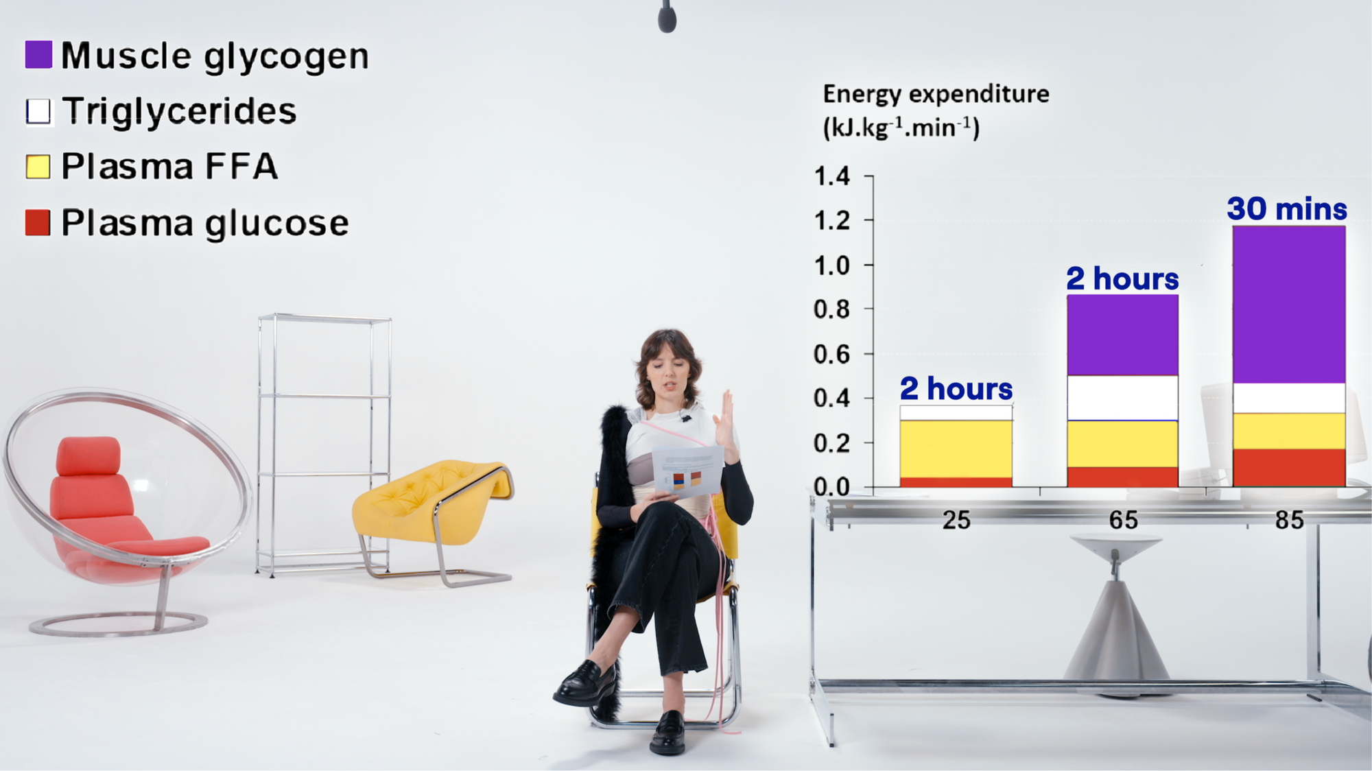 Watt M J et al., “Intramuscular triacylglycerol, glycogen and acetyl group metabolism during 4 h of moderate exercise in man.” The Journal of physiology 541, Pt 3 (2002): 969-78. https://pubmed.ncbi.nlm.nih.gov/12068055/