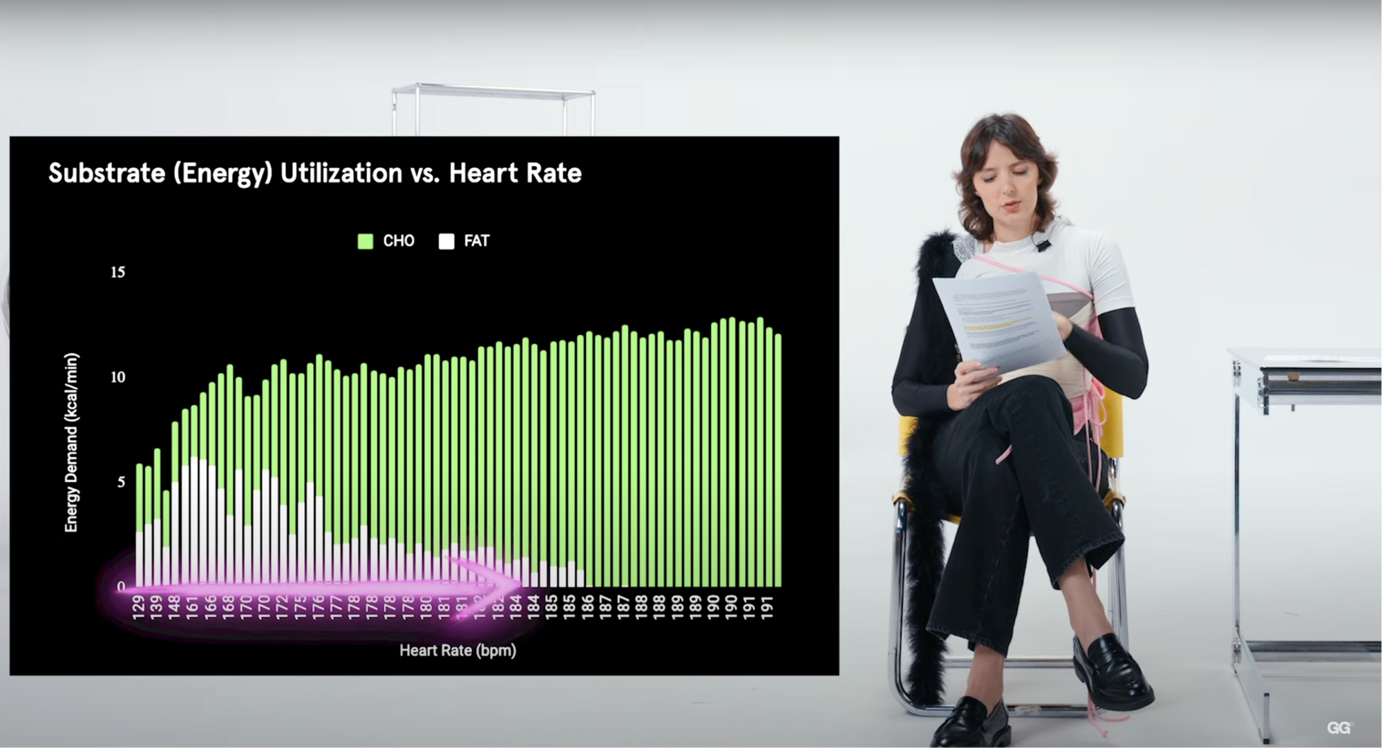To estimate what fuel you’re using, you can measure your heart rate as a percentage of your VO2 max (or maxHR). For example, if you’re 40 years old and your heart rate during a walk is about 90bpm, this is 50% of your maxHR (again, which is calculated as 220 minus your age = 180bpm).