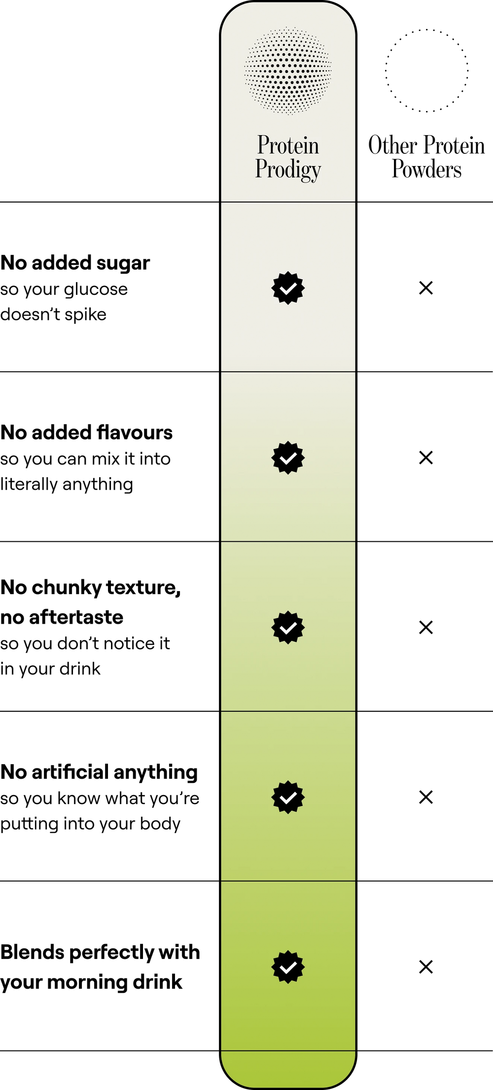 - No flavouring. No aftertaste. No weird texture. No artificial anything. Just a creamy, delicious protein that you’ll love adding to your morning drink.